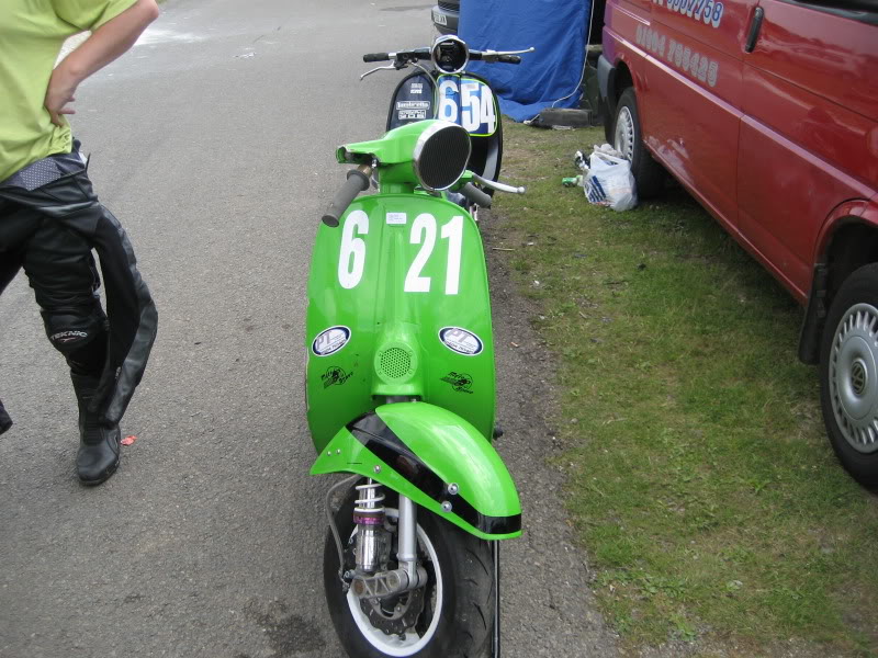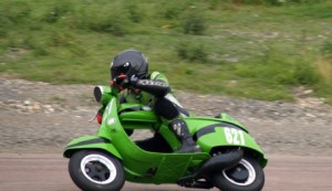 We were made quite welcome by the German lads and I believe they were a little surprised at the speed of the Uk machines. Charlie Edmonds set the new scooter lap record with an amazing 2.45 seconds with my Vespa coming second fastest at 2.47.