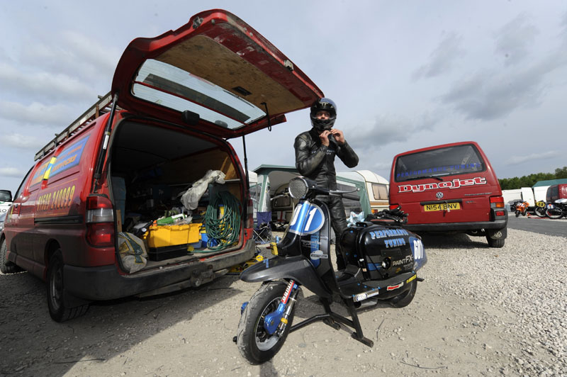 As posted I wasnt racing at this weekend, but I went along with my camera to take a few snaps… its coverage of everything that happend at a Bsso meet so expect to see everything from Zip Sp’s to Lambretta Gp’s.. they are all scooters at the end of the day! Hope you like.