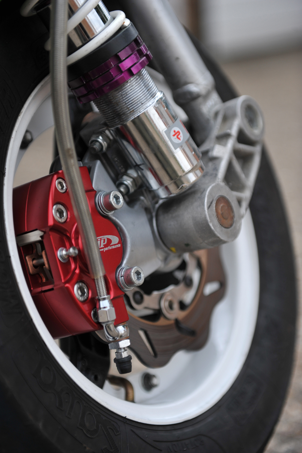 That pic is the caliper just bolted on… the real issue was bleeding and getting it to clear the Polini floating disc and centralisation of the rotor.